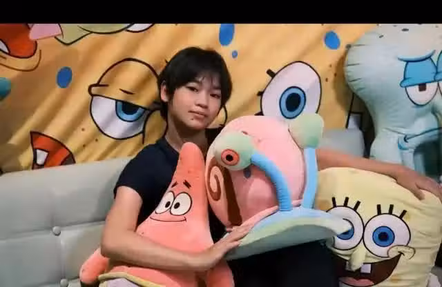 視頻里,師兄和嬋寶坐在家裡的床上,二人頭上都戴了一頂遮陽帽,搞笑的是二人都故意把遮陽帽的帽檐給翻起來戴著。