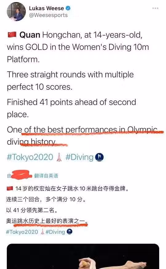 對14歲時的全紅嬋,外媒清一色好評,外國網友用一張圖說明她的厲害