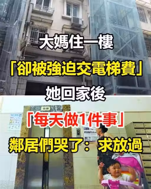 大媽住一樓「被強迫交電梯費 」 回家後「每天做1件事」鄰居們哭了:求放過