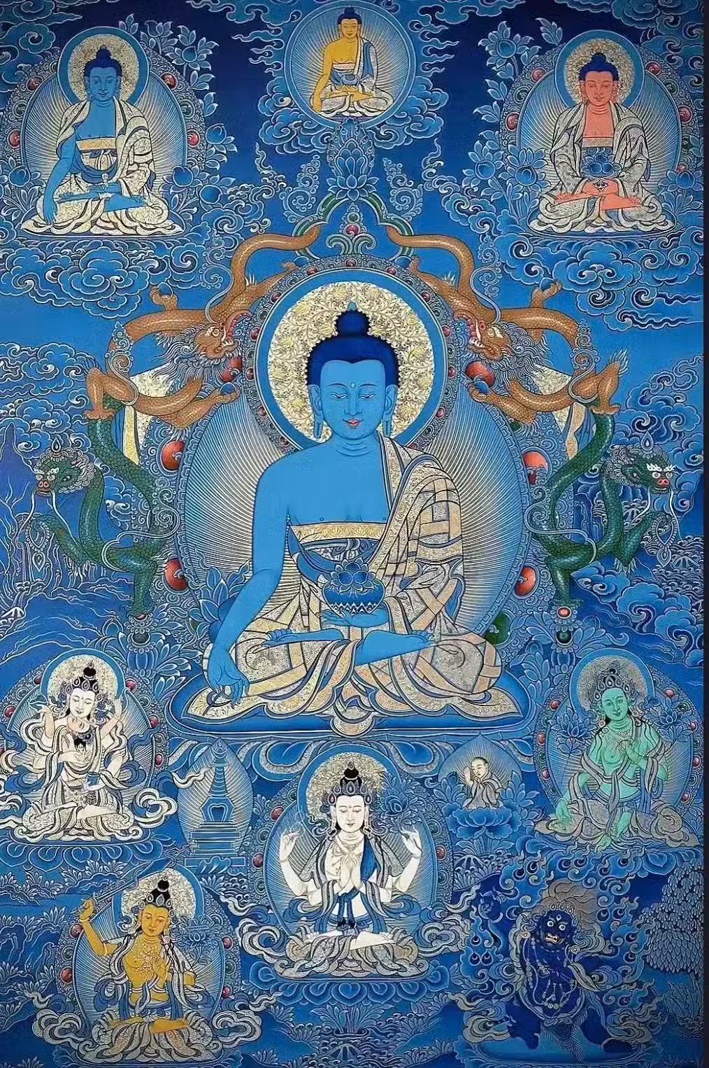 日光菩薩是藥師佛的左脅侍,象徵溫暖的陽光。她如同照耀世間的光明,驅散疾病與痛苦的黑暗。日光菩薩以其無盡的光明智慧,引導人們認清生命的價值,照亮前行的道路。她教導人們如何預防疾病,保持身體的健康與活力,讓人們感受到生命的美好與希望。
