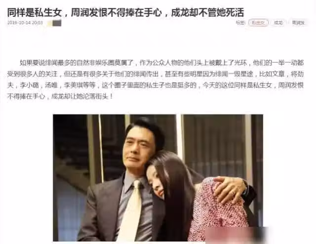 由於文章僅提及成龍和周潤發對私生女的態度,因此他們沒有提及私生女的身份信息。為了獲取更多信息,我搜索了有關周潤發的私生女的關鍵字。我確實發現了很多有關周潤發的私生女的報道。這些文章中最常提及的是,周潤發的私生女的親生母親竟然是趙亞芝。