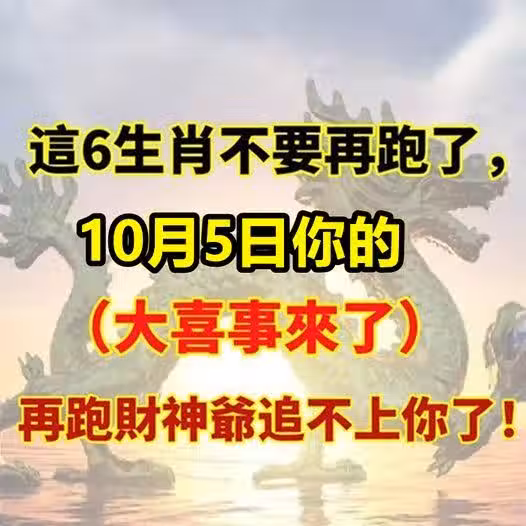 這六大生肖不要再跑了,10月5日你的(大喜事)來了,再跑財神爺追不上你了!