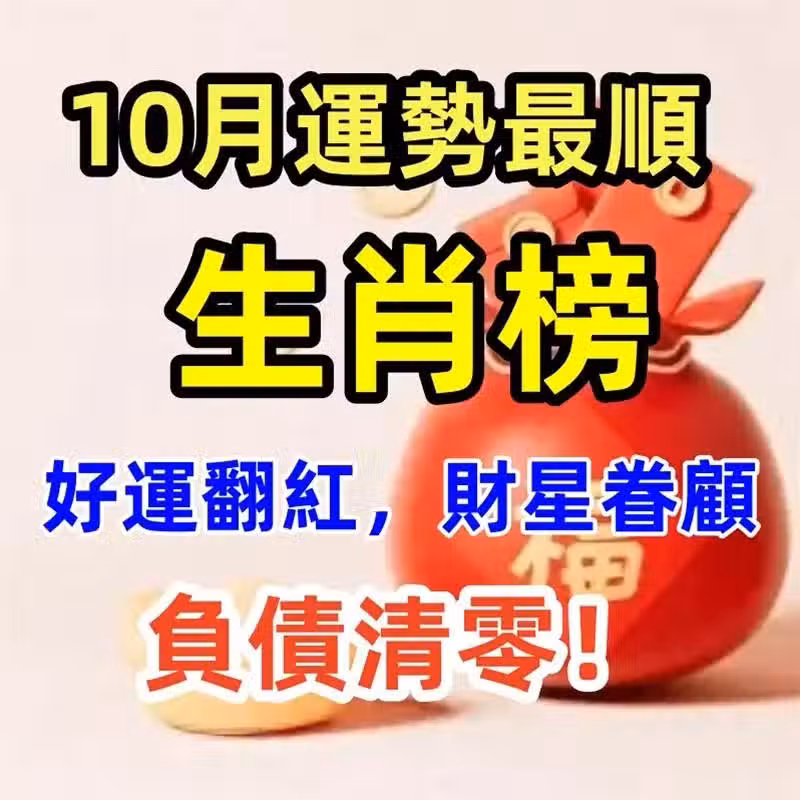 10月運勢最順生肖榜,好運翻紅,財星眷顧,負債清零!