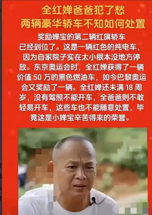 嬋寶的爸爸犯難了,全紅嬋獎勵的獎品不知怎樣處理。原因有幾點。