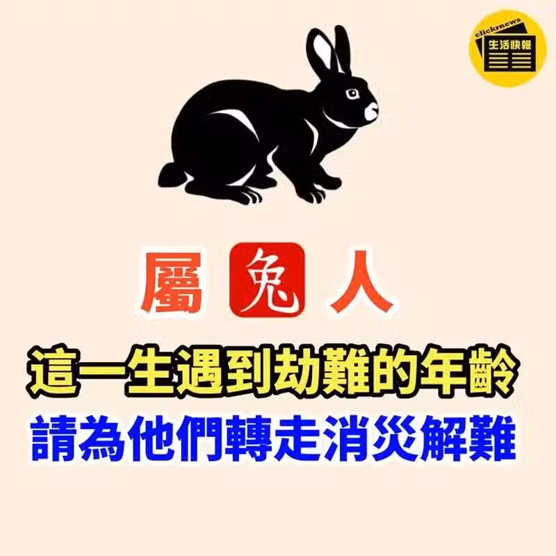 屬兔的人這一生遇到劫難的年齡,請為他們轉走消災解難