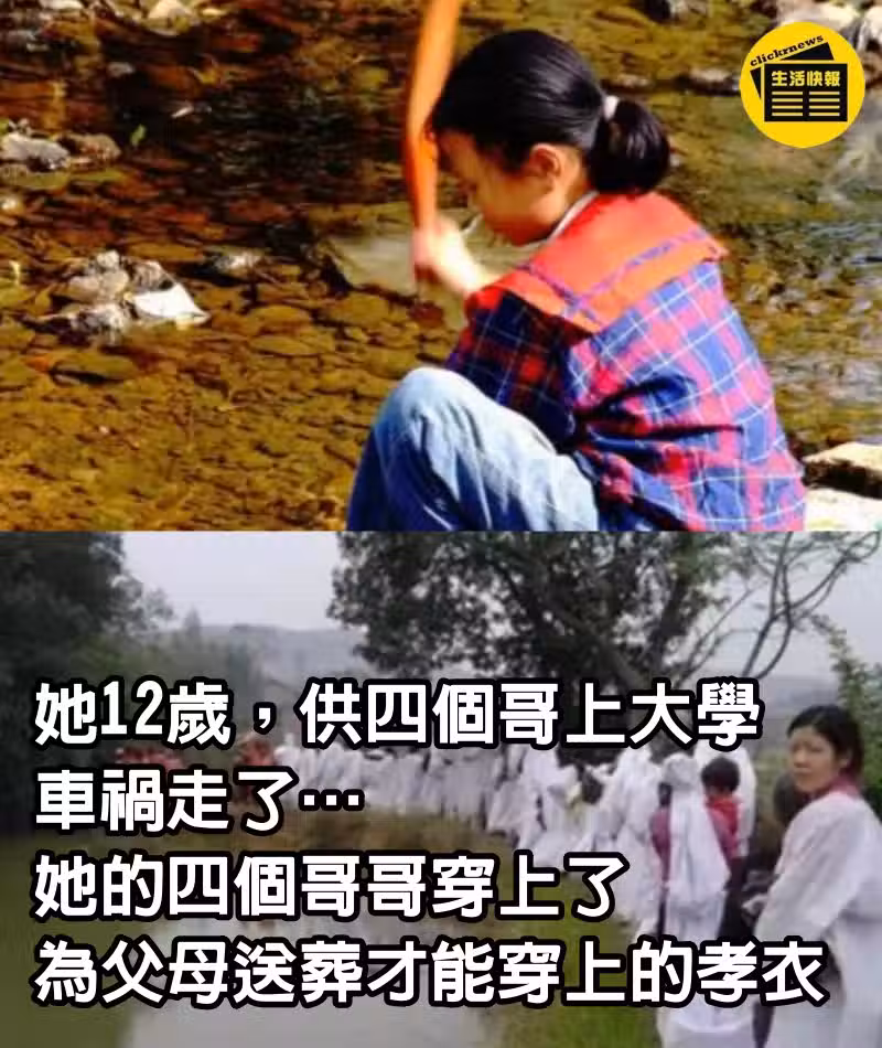 她12歲,供四個哥上大學,車禍走了…她的四個哥哥穿上了,為父母送葬才能穿上的孝衣!
