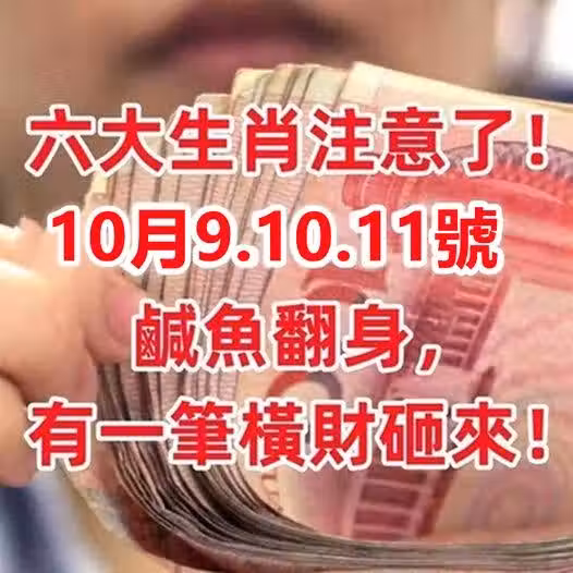 10月9.10.11號鹹魚翻身,有一筆橫財砸來的生肖!