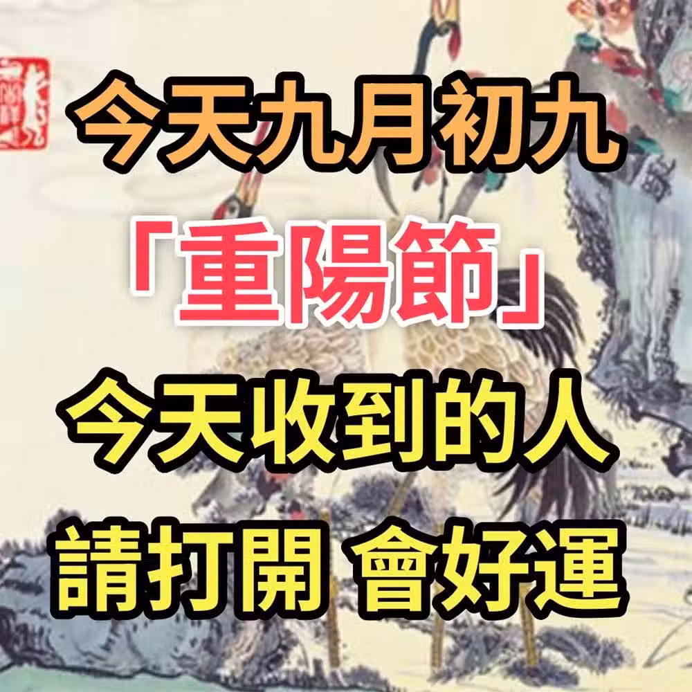 今天九月初九!「重陽節」今天收到的人請打開!會好運…