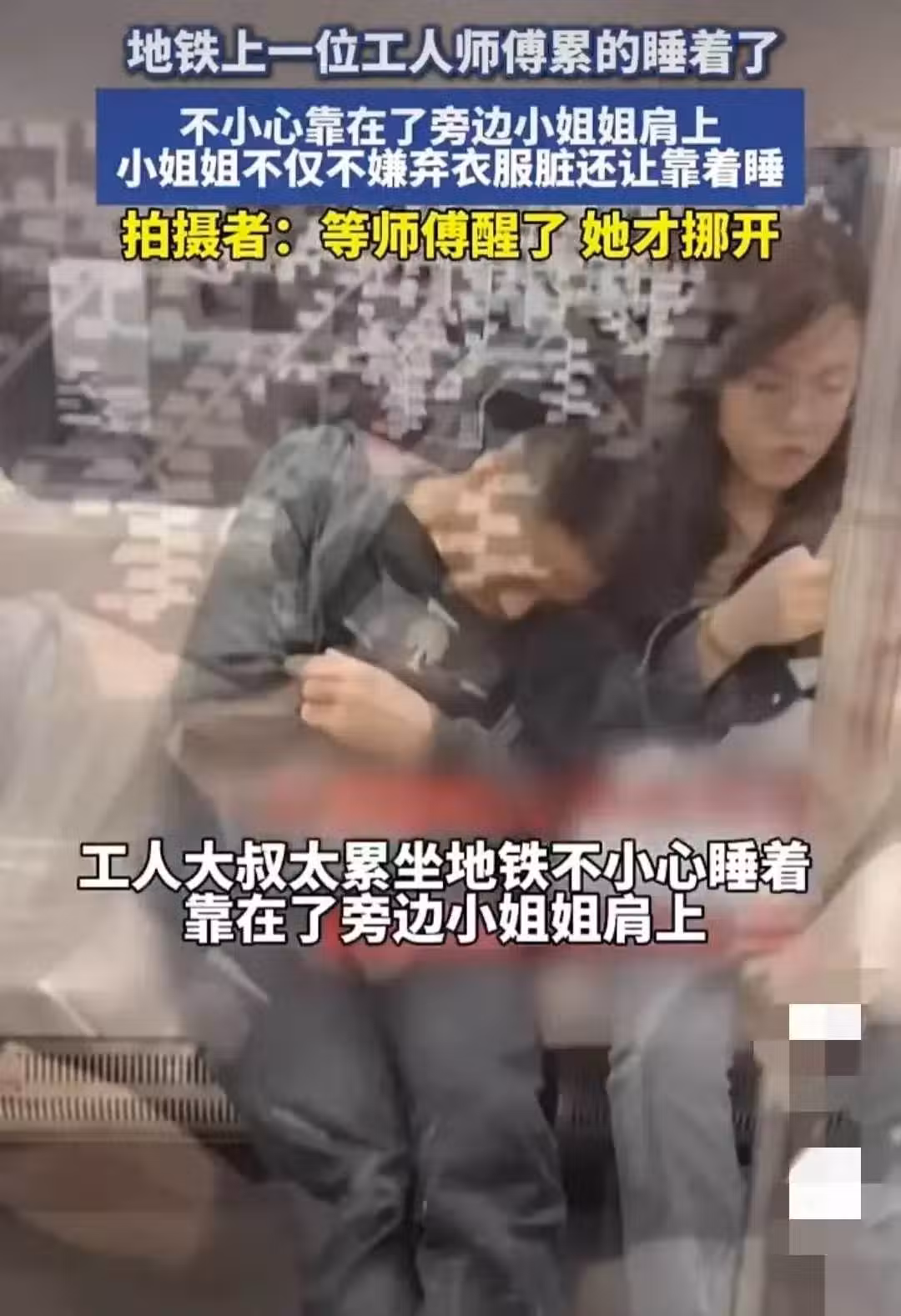 暖心一幕!捷運上一工人太累「靠女孩肩上睡著」,女孩全程不嫌棄引網贊:人美心更美