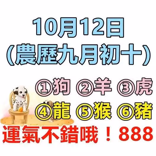 10月12日生肖運勢屬_狗、羊、虎大吉