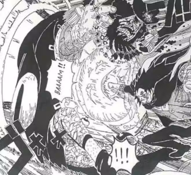 然而,黑鬍子還是太過於相信自己的判斷,沒去想這不是龍故意製造的陷阱嗎?黑鬍子的震震果實能力還沒施展出去,他就被龍一拳命中腹部,纏繞霸王色和武裝色的龍之拳,威力相當炸裂,瞬間就把黑鬍子打成重傷。