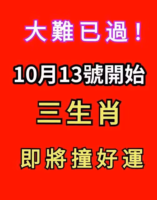 大難已過!10月13號開始 三生肖 即將撞好運!