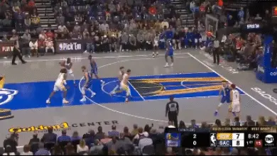 幾乎和剛才同樣的戰術,克萊接到追夢格林的傳球後頂著小薩博尼斯完成三分投射。