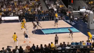 一個簡單的繞掩護,克內克特和戈貝爾形成一對一。最終在罰球線附近完成中距離終結。