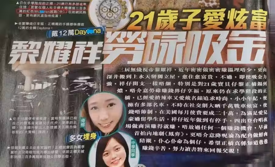 兒子能這麼瀟洒,當然少不了黎耀祥的支持。黎耀祥名下就有四輛名車,一輛比一輛貴。