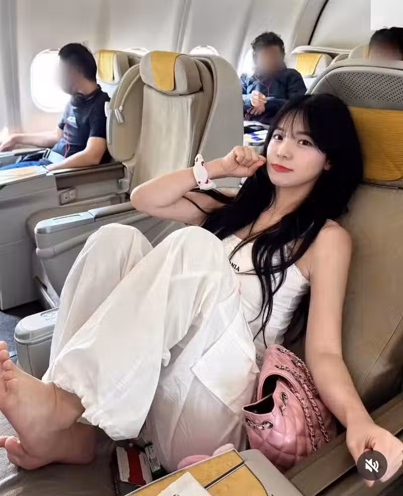 ▲李多慧在商務艙光腳。(圖/翻攝自李多慧IG)