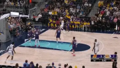 不否認拉塞爾晃開比爾很漂亮,美中不足的是大空位三分打鐵。不過,在和杜蘭特的爭搶中八村塁搶下前場籃板,為湖人創造出二次進攻機會。