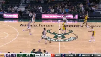 雄鹿推反擊,湖人整體退守很快且保持相對不錯的聯防陣型,這是其一。其二,八村塁處於五號位鎮守籃下,更重要一點準確預判出對手傳球路線,從而完成搶斷。