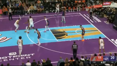 連續兩次掩護,艾頓助隊友梅斯擺脫防守人。重點是在接到前者的傳球後,艾頓迎著努爾基奇完成干拔中距離。