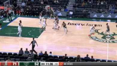 利拉德、字母哥的擋拆為後者獲得充足的衝擊籃筐空間,但最終字母哥的上籃還是被艾頓封蓋下來。
