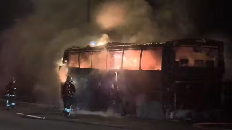 快訊/國道1號「43人客運」火燒車 火海瞬間吞沒車體