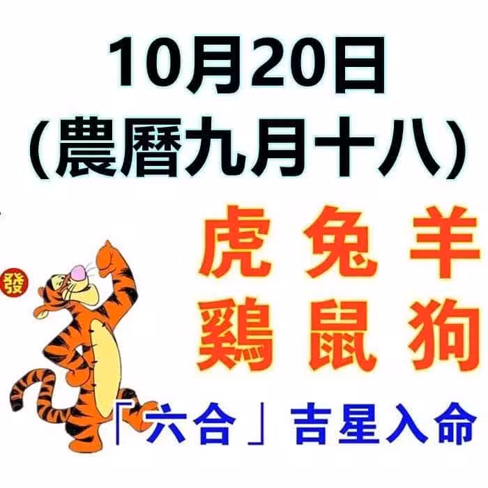 特吉生肖:虎、兔、羊 次吉生肖:雞、鼠、狗 今日帶衰:豬、猴、蛇