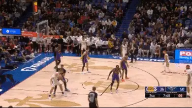 英格拉姆、CJ麥科勒姆弱側拉開,瓦蘭丘納斯低位背打濃眉。壞的方面,濃眉確實頂不動力量型中鋒;好的方面,只要對方進攻稍處停滯那麼濃眉彈跳、臂展優勢就突顯出來。