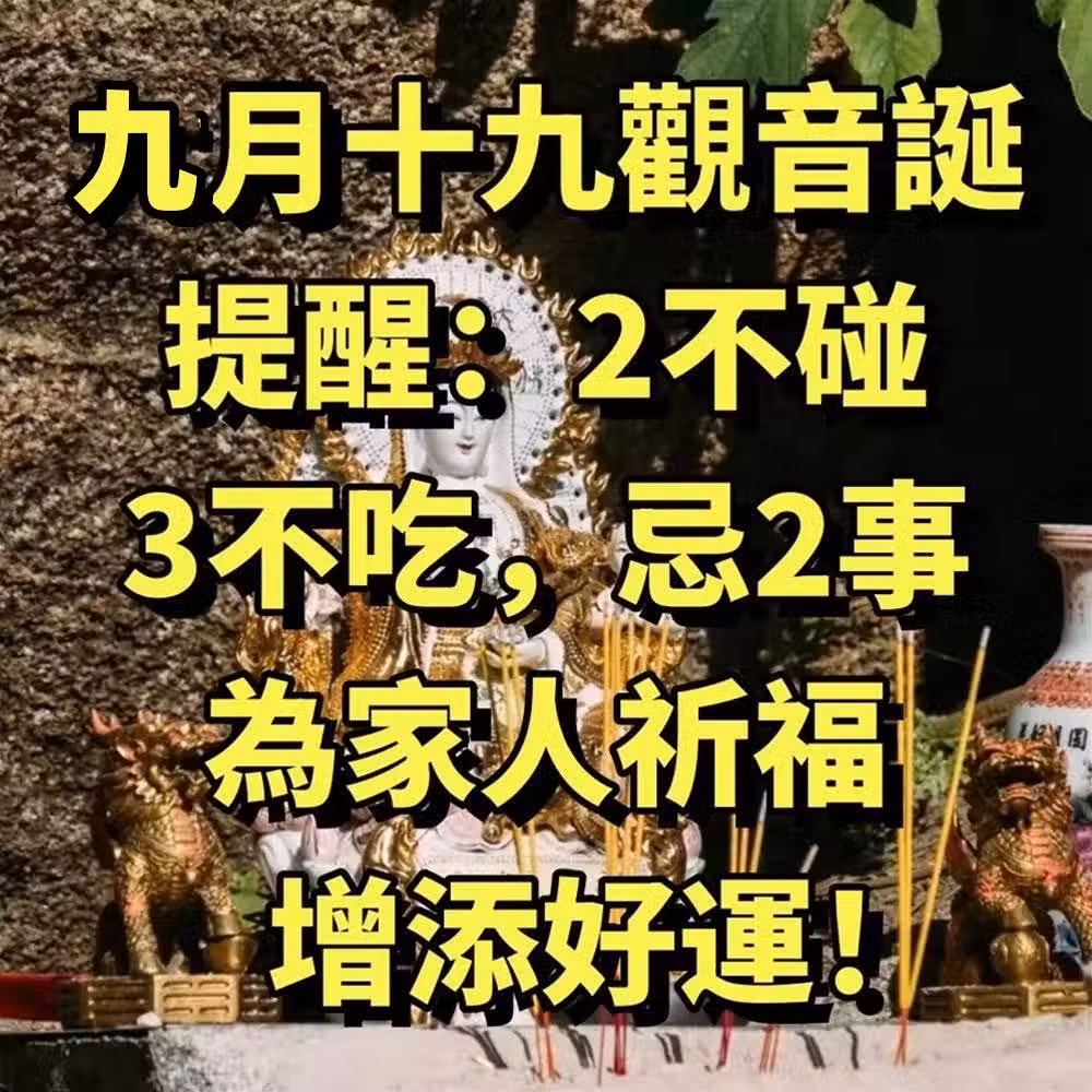 九月十九觀音誕,提醒:2不碰,3不吃,忌2事,為家人祈福增添好運!!