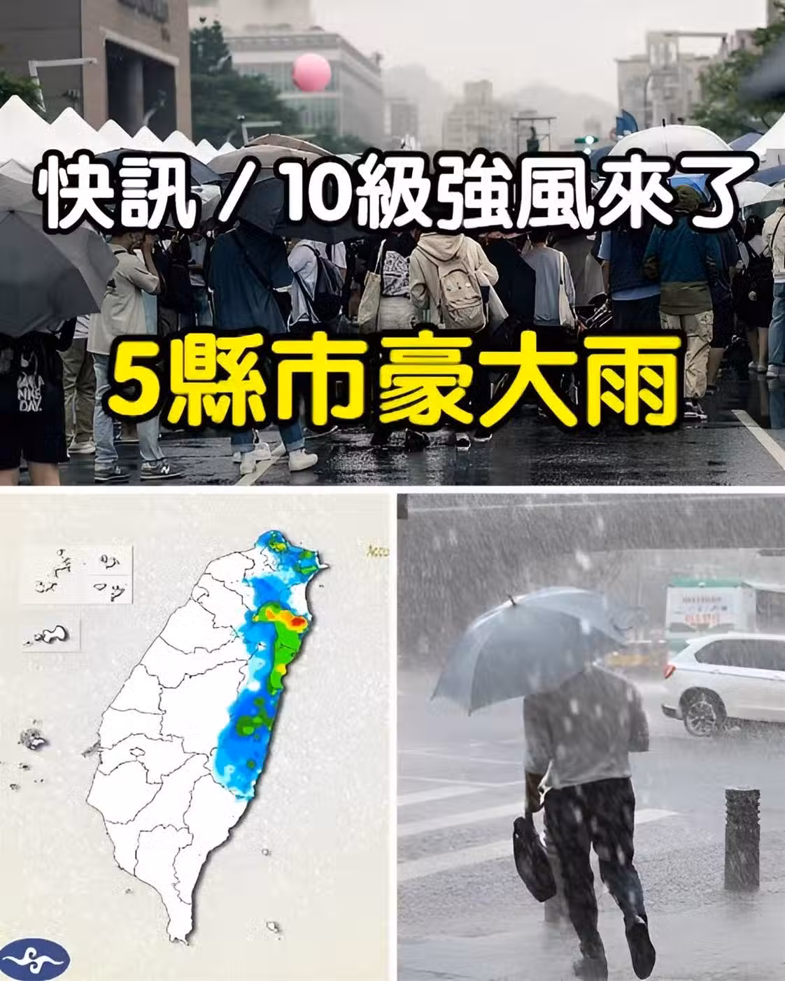 快訊/10級強風來了5縣市豪大雨