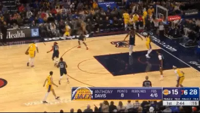 里夫斯的牽制、濃眉的阻擋,帶來的當希菲諾出手時處於絕對空位,但投籃依舊打鐵。