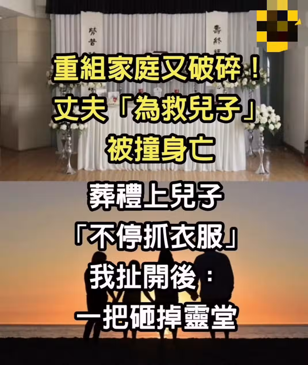 重組家庭又破碎!丈夫「為救兒子」被撞身亡 葬禮上兒子「不停抓衣服」我扯開後:一把砸掉靈堂