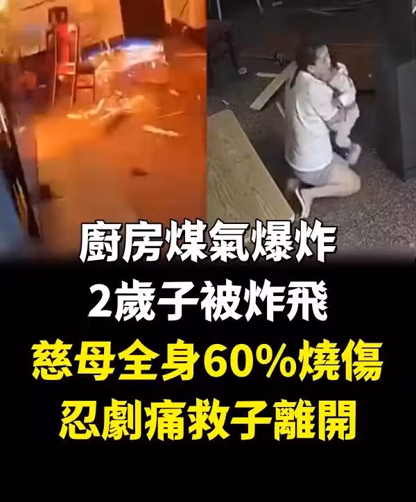 廚房煤氣爆炸,2歲子被炸飛,慈母全身60%燒傷忍劇痛救子離開