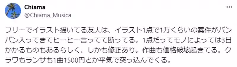 最後おのでら(Onodera)又補充說,他也不是沒有想過跟這些委託人要求提高報酬。但是有時候看到委託人提出的金額,可能要拉高到4~5倍,才會達到自己心目中的合理價格時。就讓他覺得不提也罷,感覺就不可能會達成共識啊……