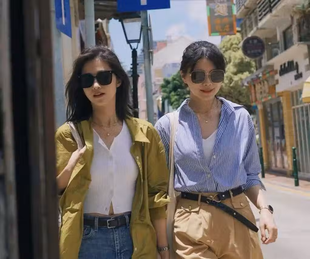 比如遮擋四分之一面部的墨鏡,既減少眼部、鬢角的皺紋,也修飾臉型,巨顯臉小。一旦臉部變得小巧了,便會顯得整個人很瘦。