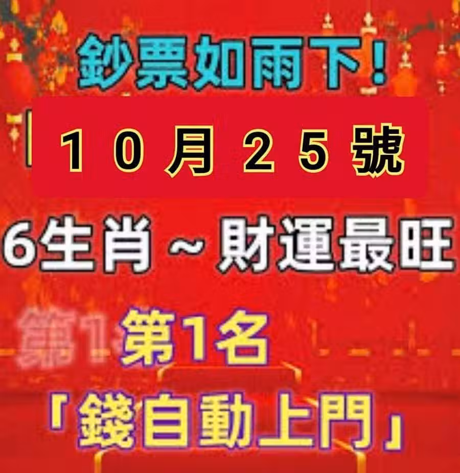 鈔票如雨下!10月25號 6生肖財運最旺,第一名「財自動上門」......