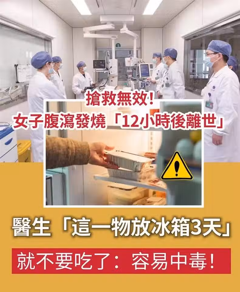 搶救無效!女子腹瀉發燒「12小時後離世」 醫生「這一物放冰箱3天」就不要吃了:容易中毒!