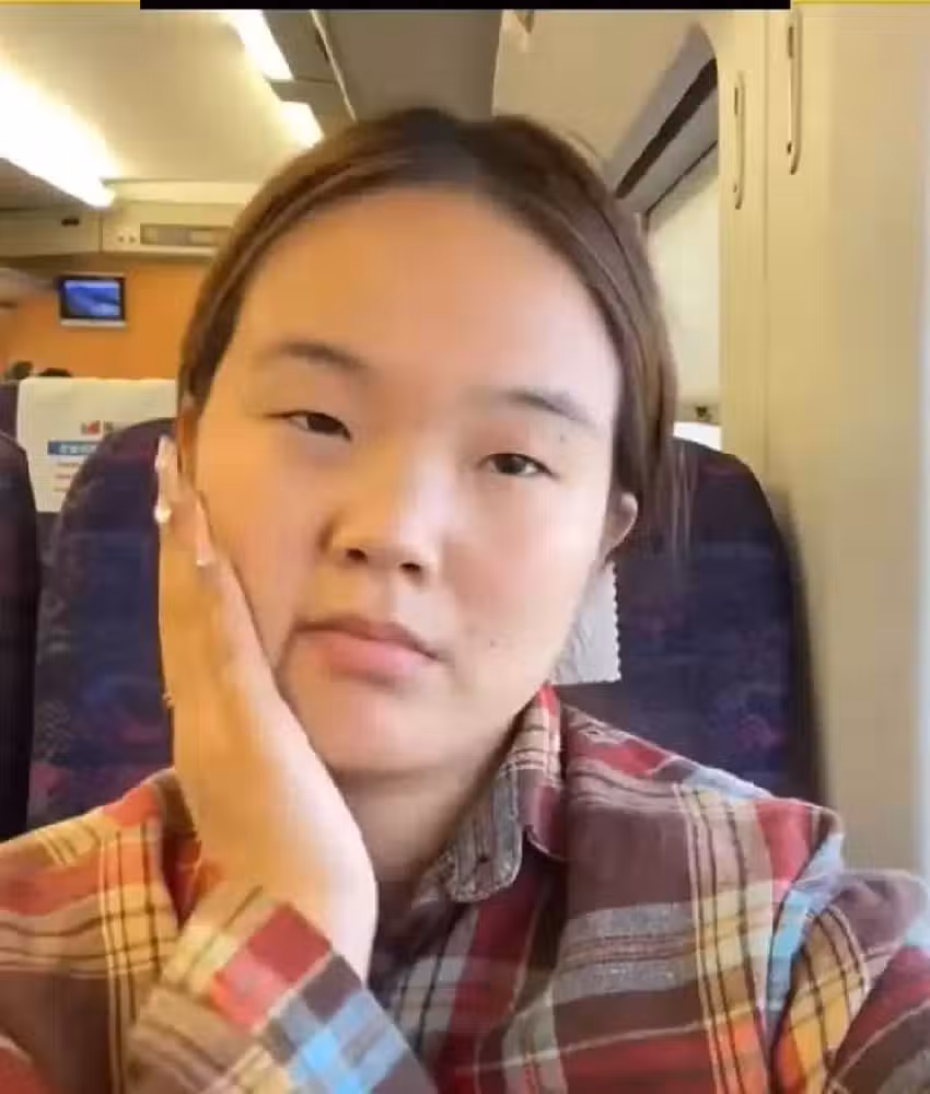 然而,就在車廂里,她取出化妝包,開始進行「現場改造」。