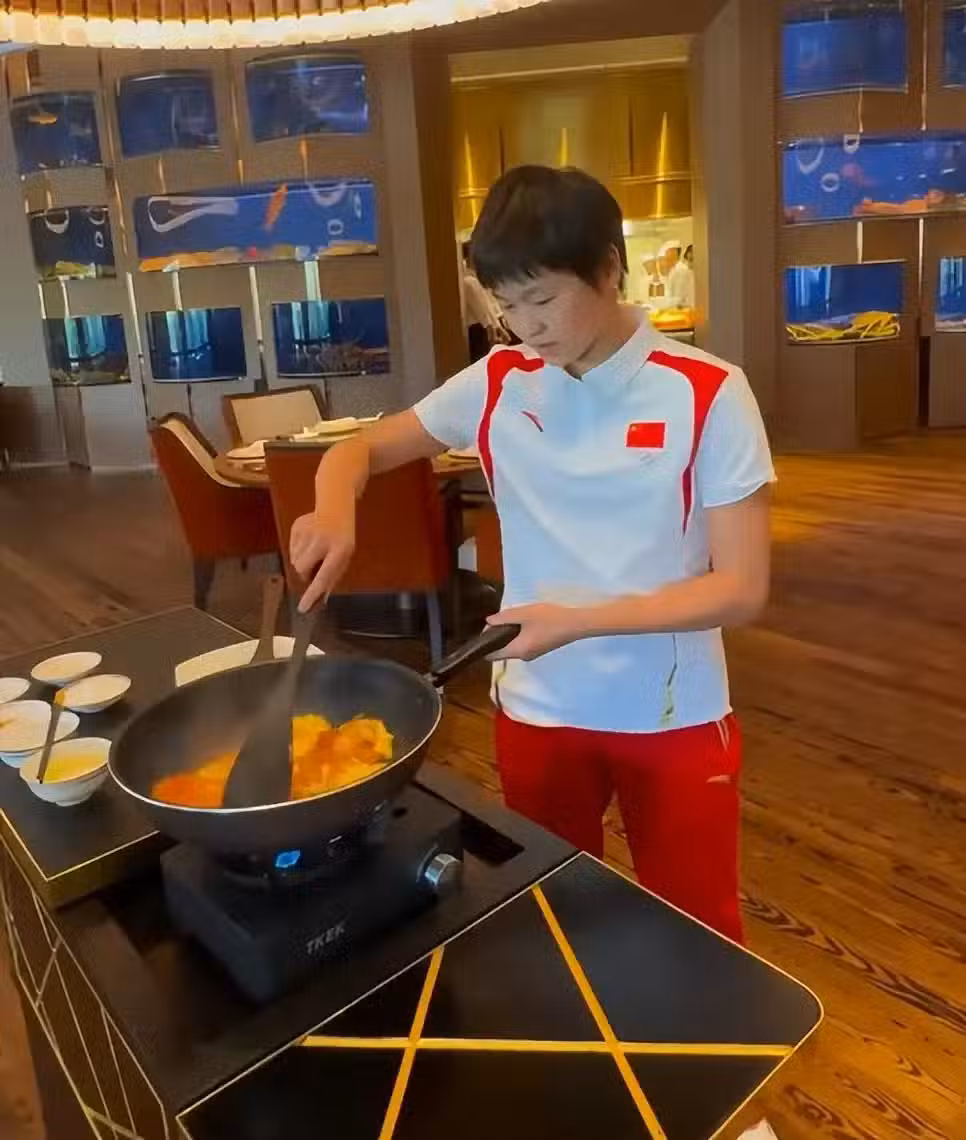 中國奧運冠軍團再次來到澳門參加活動。跳水奧運冠軍全紅嬋非常活躍,在酒店吃飯的時候,她在廚師的指導下,現場做了一道西紅柿炒雞蛋,得到了冠軍們的稱讚。全紅嬋化身大廚了。