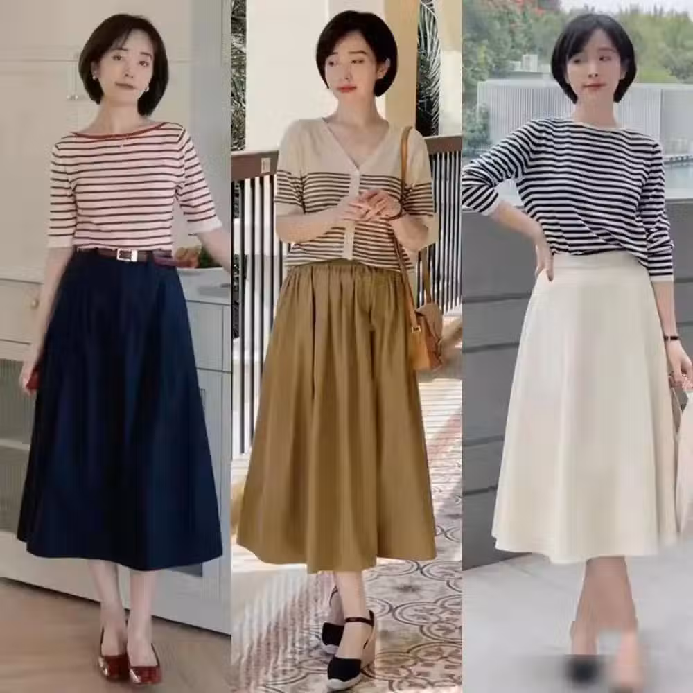 ③,半身裙搭配上短袖或者是襯衫