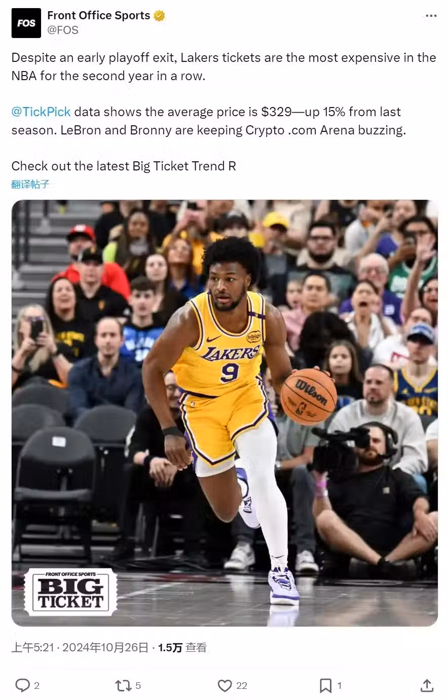 除了平均票價,還有一個最低票價的統計:湖人揭幕戰最低票價130美元,鵜鶘最低票價3美元,火箭最低票價9美元。聯盟大球市和小球市收入差距很大,光門票這一項能差好幾倍,甚至十幾倍,還有轉播商和贊助商的差距……