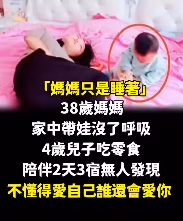 「媽媽只是睡著」38歲媽媽家中帶娃沒了呼吸,4歲兒子吃零食陪伴2天3宿無人發現:不懂得愛自己誰還會愛你