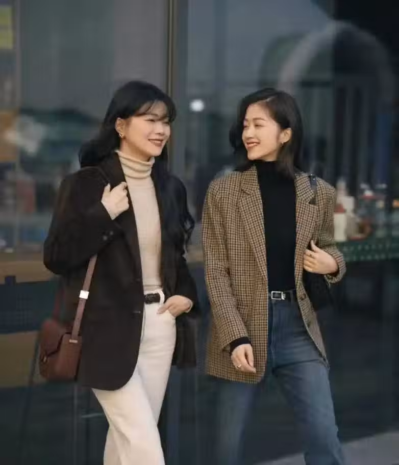在選擇高領毛衣時,要在衣領奪下功夫,像這樣加長疊對的版型最佳,能增加層次感和時尚感,還可以幫助臉型不完美的女生修飾面部結構,修飾頸部線條,讓整體比例更有協調性。