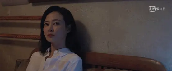 李靜的第一次亮相是在陽台上,她拉開窗簾,從陽台上走進房間,坐下與嚴良對話時,眼神不自覺地瞟向陽台,臉上帶著強自鎮定的表情。