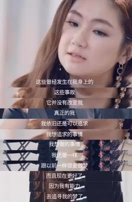 她曾在節目中談到,經過失婚和重重困難的她,現在不再依賴男性,而是選擇自立養家。