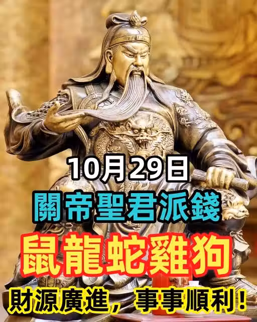 10月29日,關帝聖君派錢,這些生肖如果你在榜里,快接財!