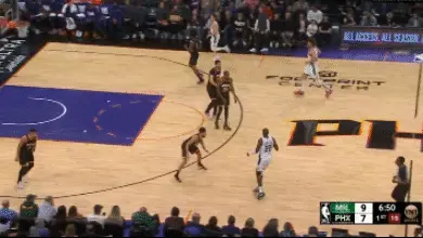 在字母、小洛佩茲連續掩護下米德爾頓很好甩開杜蘭特,最後完成中距離跳投。單就這個回合,不單是終結那麼簡單。更重要的是可以「懲罰」防不出來的內線——努爾基奇只能眼睜睜看著米德爾頓跳投。