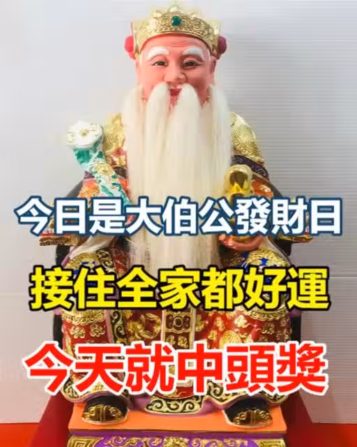 偷偷告訴你今日是大伯公發財日,大伯公送財給你,接住全家都好運,今天就中頭獎