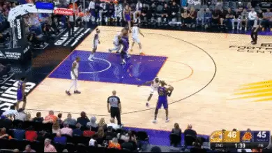 接到詹姆斯傳球,濃眉借勢甩開普拉姆利後迎著比爾完成終結。