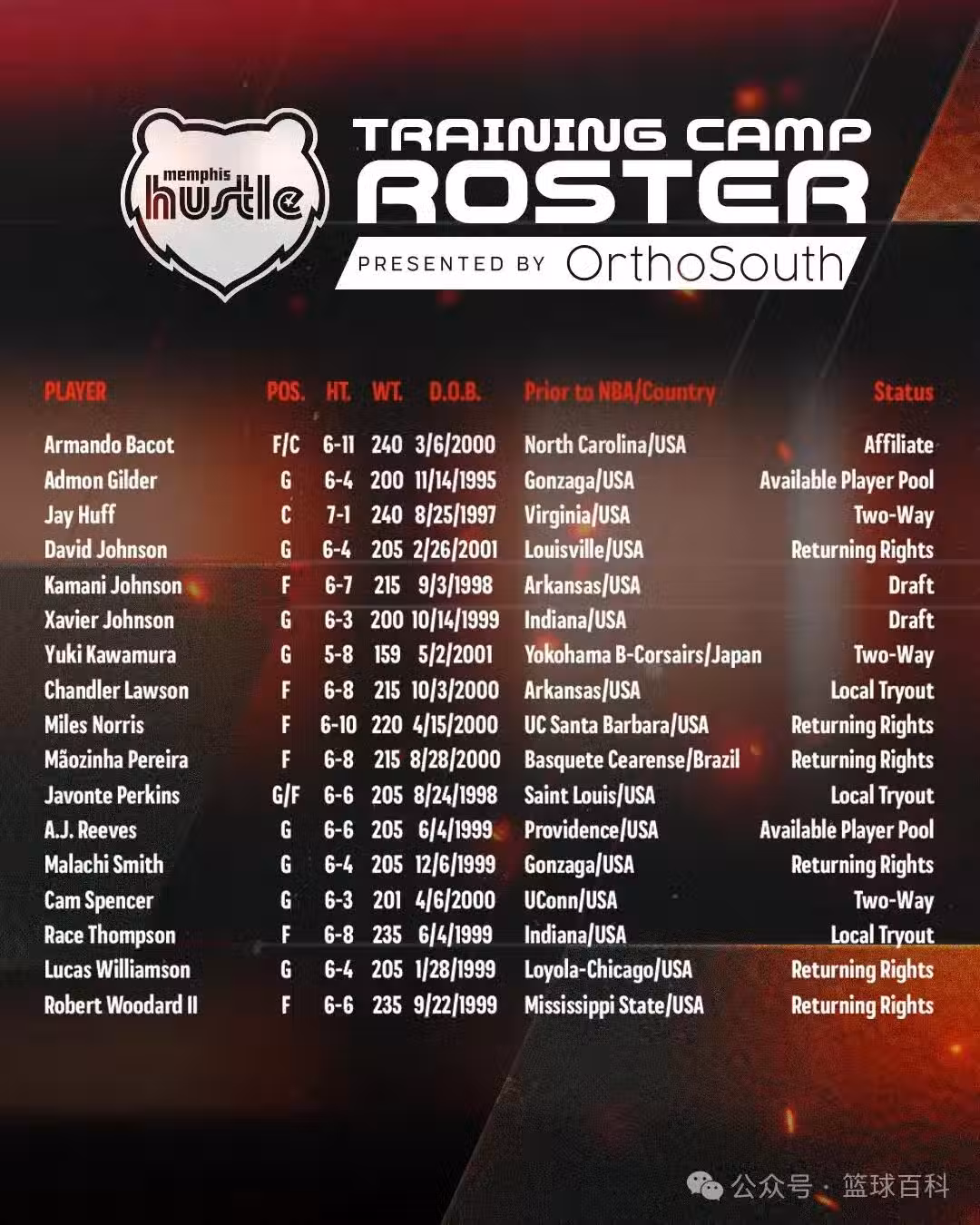 灰熊在發展聯盟的附屬球隊孟菲斯拼搏隊今日公布了新賽季的大名單,日本球員河村勇輝位列其中。