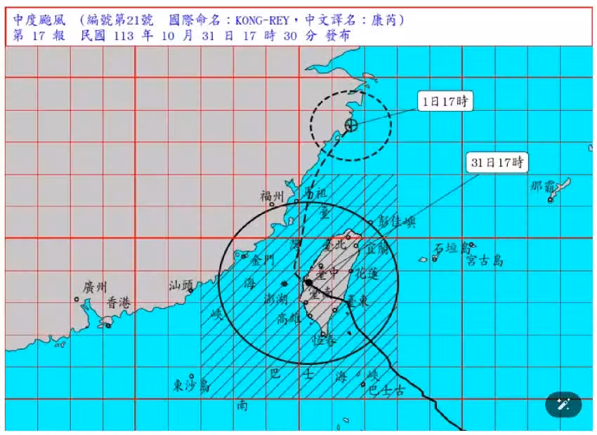 不斷更新!/康芮加速了!晚間20:00宣布「全台11/1颱風假出爐」各地一次看